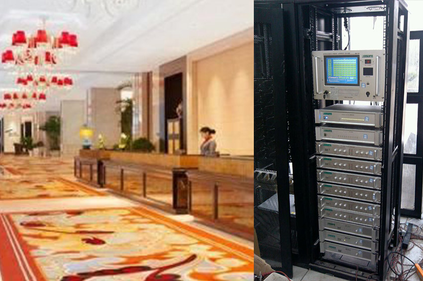 系統(tǒng)主要分布在酒店的公共場所、走道、客房內(nèi)等位置,設(shè)置壁掛音箱和吸頂揚(yáng)聲器。平時(shí)可以聯(lián)成一個(gè)整體或分區(qū)播放音樂節(jié)目;當(dāng)發(fā)布通知時(shí),播音人員可以將當(dāng)前背景音樂狀態(tài)切換到廣播狀態(tài),進(jìn)行消息和通知的發(fā)布;當(dāng)發(fā)生火警時(shí),則立即切換為消防廣播,指揮人員疏散。