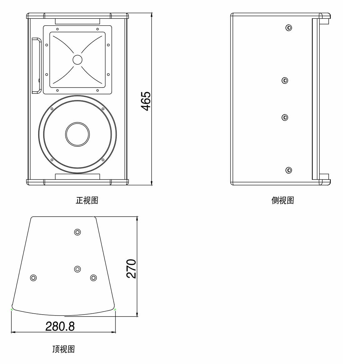 二分頻8英寸低頻驅(qū)動單元和1英寸壓縮驅(qū)動高音單元組成的全頻音箱。