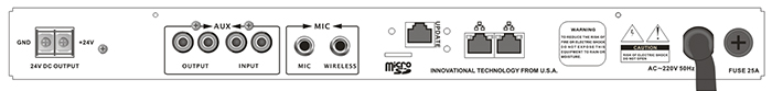 ●具有一路線路輸入口,可接入定時(shí)播放器、CD等外部模擬音源設(shè)備。