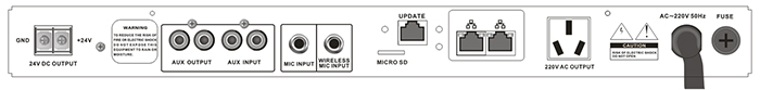 ●具有一路線路輸入口,可接入定時(shí)播放器、CD等外部模擬音源設(shè)備。